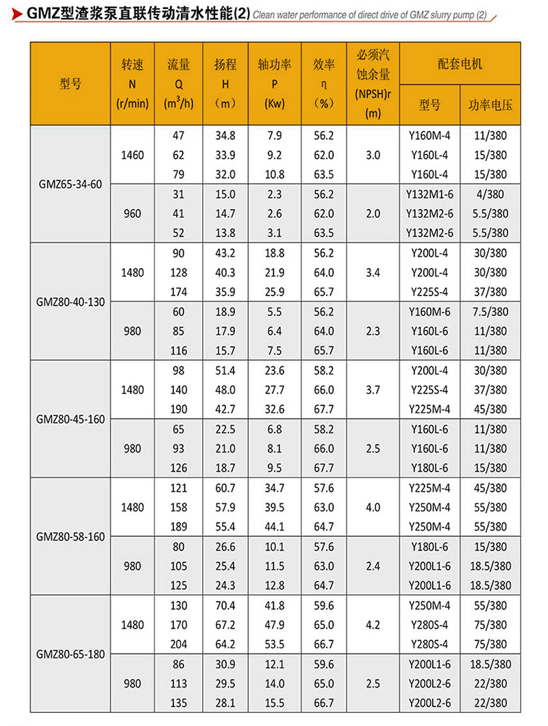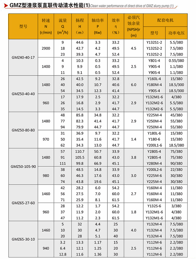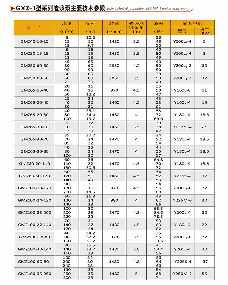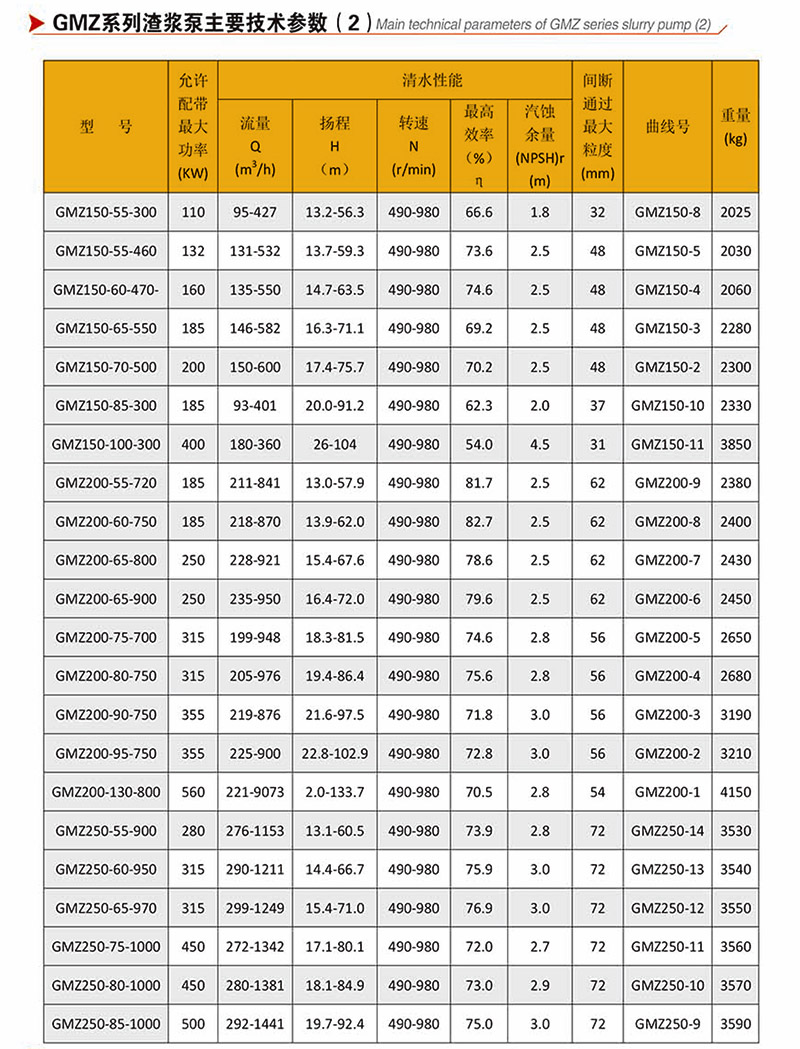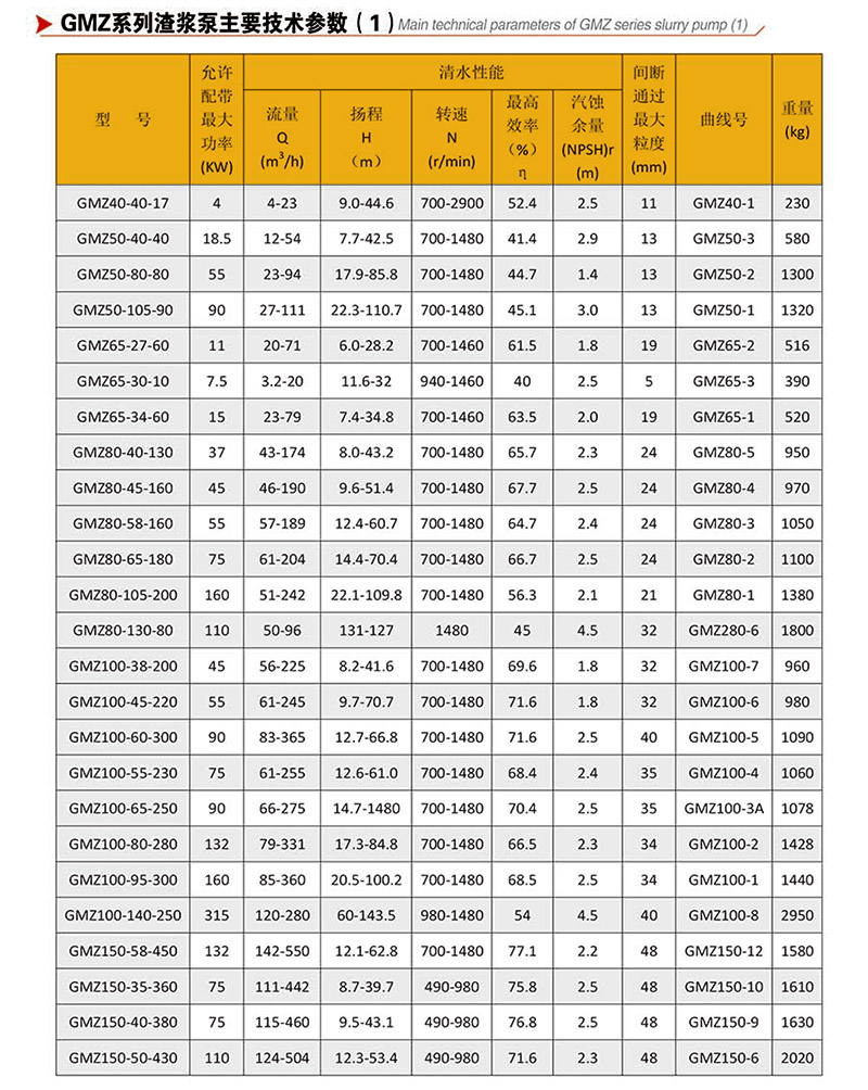 GMZ型泵根據(jù)抽吸的介質(zhì)不同,具有可互換的各種材質(zhì)的過流部件,適用于輸送磨蝕性或腐蝕性、大顆?;蚣?xì)顆粒漿體。