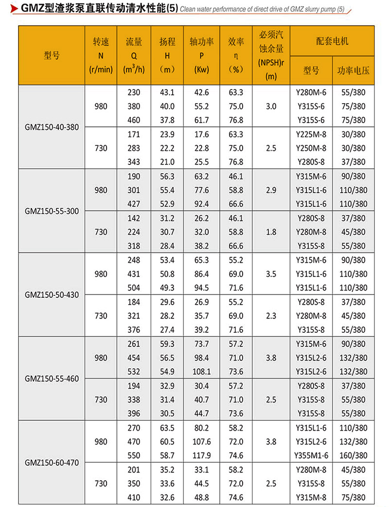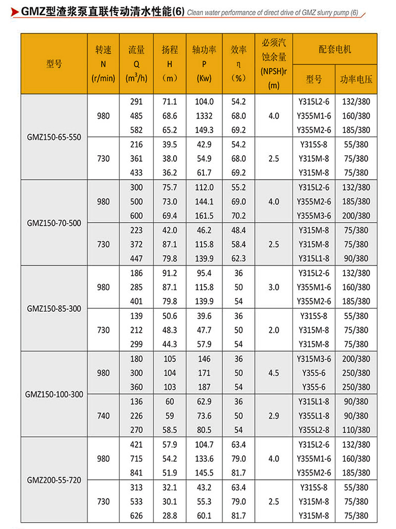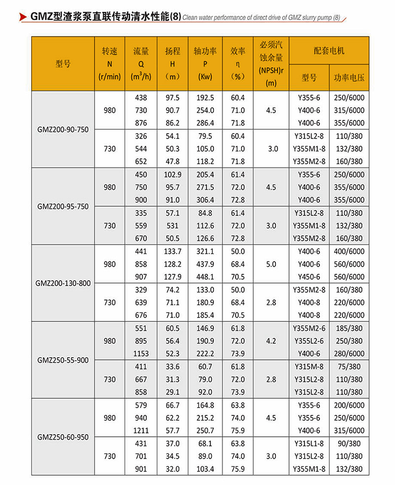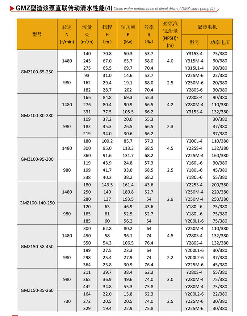 GMZ型泵根據(jù)抽吸的介質(zhì)不同,具有可互換的各種材質(zhì)的過流部件,適用于輸送磨蝕性或腐蝕性、大顆?;蚣?xì)顆粒漿體。